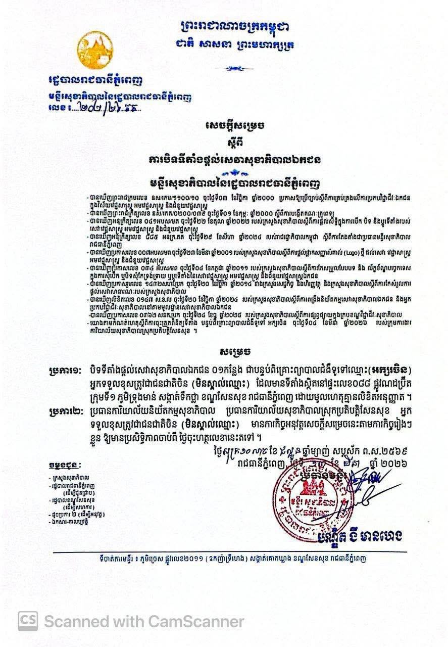 សុខភាព បិទ ទីតាំងផ្តល់សេវា សុខាភិបាលឯកជន គ្មានច្បាប់ ចំនួន ២ទីតាំង! TNN NEWS (Admin) March 13, 2026 0 ភ្នំពេញ៖ មន្ទីរសុខាភិបាល នៃរដ្ឋបាលរាជធានីភ្នំពេញ បានបិទទីតាំង ផ្តល់សេវាសុខាភិបាលឯកជន ដែលគ្មានច្បាប់ចំនួន ២ទីតាំង។ @timelynewsnetwork About the Author TNN NEWS (Admin) Administrator View All Posts Tags: health Post navigation Previous: ក្មេងកំព្រារ ៦នាក់ ទទួលបានក្តីអាណិតអាសូរ ពី មេ PM ខេត្តកំពង់ស្ពឺ ! Next: ក្រុមហ៊ុន Kirirom Food Production (K.F.P) Co., Ltd. ចូលរួមកែប្រែបទដ្ឋានបរិស្ថាន តាមវិធានការរបស់ក្រសួងបរិស្ថាន Leave a Reply Cancel replyYour email address will not be published. Required fields are marked *Comment * Name * Email * Website Save my name, email, and website in this browser for the next time I comment. ព័ត៌មានពាក់ព័ន្ធ សុខភាព វិចារណកថា ៖ ទីលានចាក់សំរាម និងសំណល់ត្រឹមត្រូវ ដើម្បីសុខភាពសាធារណៈ! TNN NEWS (Admin) March 23, 2026 0 ព័ត៌មានជាតិ រដ្ឋមន្រ្តីសុខាភិបាល ៖ «សុខាភិបាល និងវីរកងទ័ព នៅជាមួយគ្នា រួមសុខរួមទុក្ខ ជាមួយគ្នា!» TNN NEWS (Admin) March 21, 2026 0 សន្តិសុខសង្គម ក្រសួងបរិស្ថាន បានចាត់វិធានការ ឱ្យអាជីវកម្ម គ្រឿងអលង្ការ បញ្ឈប់ការចម្រាញ់ មាស នៅលើទីវាល ដែលជាប្រភពធ្វើឱ្យគុណភាពខ្យល់ ធ្លាក់ចុះ និងប៉ះពាល់ ដល់សុខភាពសាធារណៈ! TNN NEWS (Admin) March 16, 2026 0
