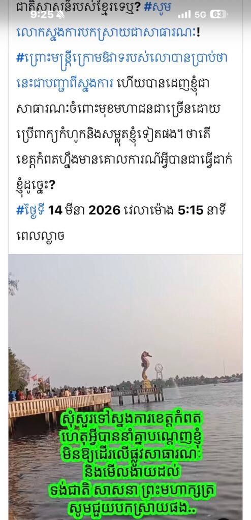 យោងតាម ទំព័រហ្វេសប៊ុក លោកឧត្តមសេនីយ៍ទោ ម៉ៅ ចន្ទ័មធុរិទ្ធ ស្នងការខេត្តកំពត នាព្រឹកថ្ងៃទី១៦ ខែ មីនា ឆ្នាំ២០២៦។