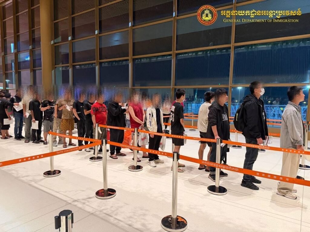 ភ្នំពេញ៖ នៅថ្ងៃទី៣ ខែកុម្ភៈ ឆ្នាំ២០២៦ អនុវត្តតាមអនុសាសន៍ដ៏ខ្ពង់ខ្ពស់ របស់ឯកឧត្តមអភិសន្តិបណ្ឌិត ឧបនាយករដ្ឋមន្ត្រី រដ្ឋមន្ត្រីក្រសួងមហាផ្ទៃ ឯកឧត្តម សន្តិបណ្ឌិត និងថ្នាក់ដឹកនាំក្រសួងមហាផ្ទៃ ឯកឧត្តម ឧត្តមសេនីយ៍ឯក សុខ វាសនា អគ្គនាយកអន្តោប្រវេសន៍ បានណែនាំឱ្យនាយកដ្ឋានស៊ើបអង្កេត និងអនុវត្តនីតិវិធី បន្តធ្វើការបណ្តេញជនបរទេសសរុបចំនួន ៤២៨នាក់ (ស្រី៤នាក់) មាន ៨សញ្ជាតិ រួមមាន ចិន ឥណ្ឌូនេស៊ី បង់ក្លាដេស កូរ៉េ ប៉ាគីស្ថាន យូហ្គង់ដា នីហ្សេរីយ៉ា និងឥណ្ឌា ក្នុងនោះមានជនជាតិចិន(៤០១នាក់) ចេញពីព្រះរាជាណាចក្រកម្ពុជា តាមប៉ុស្តិ៍នគរបាលច្រកទ្វារអាកាសយានដ្ឋានអន្តរជាតិតេជោ ដែលពាក់ព័ន្ធករណីលួចឆ្លងដែន ស្នាក់នៅធ្វើការងារខុសច្បាប់ក្នុងព្រះរាជាណាចក្រកម្ពុជា។