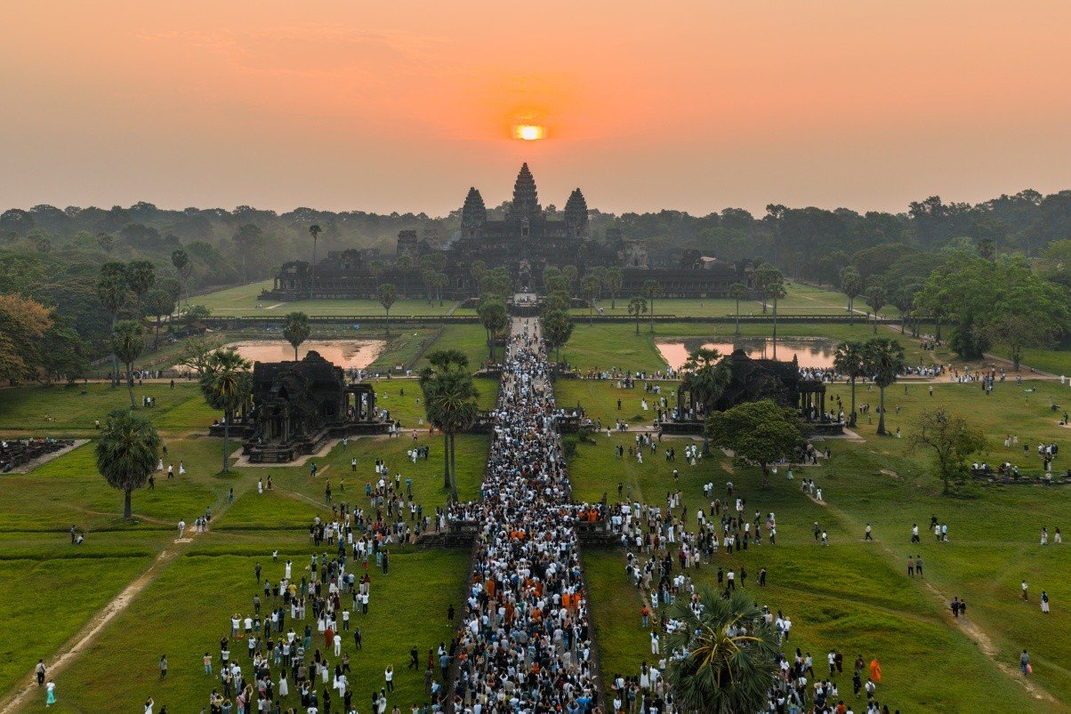 ថ្ងៃទី២១ ខែមីនា ឆ្នាំ២០២៦~ប្រាសាទអង្គរវត្ត គិតត្រឹមម៉ោង ៧:០០នាទី មានភ្ញៀវទេសចរជាតិ អន្តរជាតិមានចំនួនប្រមាណ ២០,៦៥៦ នាក់ ក្នុងនោះ ភ្ញៀវទេសចរជាតិ និងបងប្អូនប្រជាពលរដ្ឋក្នុងខេត្ត ប្រមាណ ១៨,៦៤០នាក់ និងភ្ញៀវទេសចរបរទេសចំនួនប្រមាណ ២,៣១៦នាក់ ចូលរួមទស្សនា និងផ្តិតយករូបព្រះអាទិត្យរះចំកំពូលកណ្តាលនៃប្រាសាទអង្គរវត្ត ឬសមរាត្រីអង្គរ ។ នៅសល់ពីរថ្ងៃទៀតសូមបងប្អូនអញ្ជេីញចូលរួមឱ្យបានច្រេីនកុះករបន្ថែមទៀ ត ។