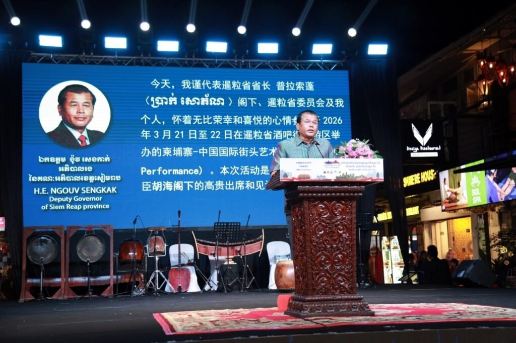 ខេត្តសៀមរាប ៖ នៅរាត្រីថ្ងៃទី២១ ខែមីនា ឆ្នាំ២០២៦ លោក ង៉ូវ សេងកាក់ អភិបាលរងខេត្ត តំណាងដ៏ខ្ពង់ខ្ពស់ឯកឧត្តម ប្រាក់ សោភ័ណ អភិបាល នៃគណៈអភិបាលខេត្តសៀមរាប បានអញ្ជេីញចូលរួមក្នុងព្រឹត្តិការណ៍ «មហោស្រពសិល្បៈតាមដងផ្លូវអន្តរជាតិ កម្ពុជា-ចិន» អបអរសាទរ «ឆ្នាំទេសចរណ៍ កម្ពុជា-ចិន និងដើម្បីចូលរួមអបអរសាទរខួបលើកទី ៦៨ឆ្នាំ នៃការបង្កើតចំណងការទូតរវាងប្រទេសកម្ពុជា-ចិន ក្នុងបរិការណ៍ដែលទំនាក់ទំនងកម្ពុជា-ចិន កំពុងត្រូវបានពង្រឹងពង្រីកពូនជ្រំ និងធ្វើឱ្យស៊ីជម្រៅថែមទៀតនូវភាពជាដៃគូយុទ្ធសាស្ត្រគ្រប់ជ្រុងជ្រោយ និងកិច្ចសហប្រតិបត្តិការឈ្នះឈ្នះ រវាងប្រទេសទាំងពីរ រៀបចំដោយក្រសួងទេសចរណ៍ ក្រសួងវប្បធម៌ និងវិចិត្រសិល្បៈ ស្ថានទូតចិនប្រចាំកម្ពុជា និងរដ្ឋបាលខេត្តសៀមរាប ក្រោមអធិបតីភាព ឯកឧត្តម ហួត ហាក់ រដ្ឋមន្ត្រីក្រសួងទេសចរណ៍។
